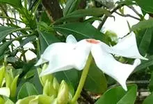 海杧果是夹竹桃科海杧果属的乔木。高4~8米;树皮为灰褐色;全株有丰富乳汁;叶厚纸质,呈倒卵状长圆形或倒卵状披针形,叶面为深绿色,叶背为浅绿色;花为白色,有芳香;核果双生或单个,呈阔卵形或球形,…全部>>
