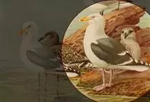 银鸥又名黑背鸥、淡红脚鸥、黄腿鸥、鱼鹰子和叼鱼狼等,全长约60厘米。体型厚重,头部平坦。夏羽头、颈和下体纯白色,背与翼上银灰色。腰、尾上覆羽纯白色,初级飞羽末端黑褐色,有白色斑点。嘴黄色,下嘴尖端有…全部>>