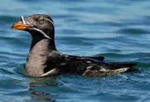 角嘴海雀,是海雀科、角嘴海雀属的中型海鸟,体长32-41厘米,嘴短而粗呈圆锥状、橙色。夏羽上嘴基部有一个三角形的突出物,形状如角。头两侧各有两条由白色丝状饰羽组成的纵带,分别位于眼上和眼下后方的头侧…全部>>