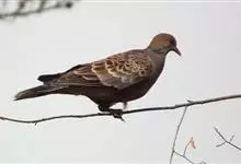 欧斑鸠体长27厘米,是一种体型略小的粉褐色斑鸠。颈侧具多黑白色细纹的斑块,翼覆羽深褐,具浅棕褐色鳞状斑。与火斑鸠的区别在体型较小,色彩较浅,翼覆羽无白色羽端,背及颈背褐色浓,颈及尾侧斑纹较白,…全部>>