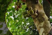 大果榕是桑科榕属的小乔木,株高可达10米;幼枝被柔毛;叶互生,宽卵状心形或近圆形;雄花无梗、匙形、花丝长,雌花生于雌株榕果内,子房白色;榕果簇生于树干基部或老茎短枝上、扁球形或陀螺形,…全部>>