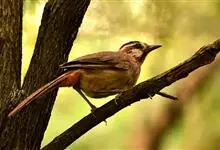 白颊噪鹛是雀形目噪鹛科噪鹛属鸟类,又称土画眉、小画眉、小噪鹃。成鸟额至头顶栗褐色,长眉纹、眼先和颊纹棕白色,眼后至耳羽深褐色,…全部>>