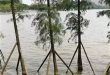池杉 Croom)是杉科、落羽杉属植物,亦称池柏,沼落羽松。落叶乔木,高可达25米。主干挺直,树冠尖塔形。树干基部膨大,枝条向上形成狭窄的树冠,尖塔形,形状优美;叶钻形在枝上螺旋伸展;球果圆球形。…全部>>