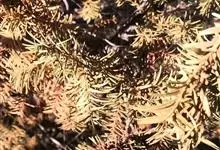 叉子圆柏是柏科刺柏属植物。株高不及1米;枝斜上伸展,枝皮灰褐色,一年生枝的分枝皆为圆柱形;叶二型,刺叶常生于幼一树上,稀在壮龄树上与鳞叶并存;花雌雄异株,雄球花椭圆形或矩圆形,…全部>>
