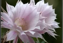 仙人球花 仙人掌科,仙人球属。植株单生或成丛。幼株球形,老株长成圆筒状,高可达75厘米,直径12-15厘米。球体暗绿色,具棱11-12。刺锥状,黑色,长1-1.5厘米。花着生于球体侧方,大型嗽喇叭状…全部>>