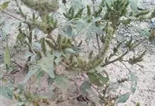 反枝苋是苋科苋属的一年生草本植物。株高达1米;茎密被柔毛;叶菱状卵形或椭圆状卵形,先端锐尖或尖凹,两面及边缘被柔毛,下面毛较密;穗状圆锥花序,顶生花穗较侧生者长;花被片长圆形或长圆状倒卵形,…全部>>