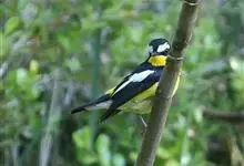 白眉姬鹟是小型鸟类,体长11-14厘米。雄鸟上体大部黑色,眉纹白色,在黑色的头上极为醒目。腰鲜黄色,两翅和尾黑色,翅上具白斑。下体鲜黄色。雌鸟上体大部橄榄绿色。腰鲜黄色,翅上亦具白斑。下体淡黄绿色。…全部>>