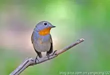 橙胸姬鹟:体长12-16厘米,是一种体型略小的林栖型鹟。尾黑而基部白,上体橄榄褐色,额具一白色横带,两端向上延伸至眼上形成眉斑。翼橄榄色,下体灰。成年雄鸟额上有狭窄白色并具小的深红色项纹,常不明显。…全部>>