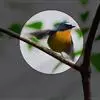 棕胸蓝姬鹟:属小型鸣禽,体长10-13厘米,体重6-10克,是一种体型很小的灰蓝及棕色鹟,雌雄羽色不同,雄鸟羽色艳丽,雌鸟羽色暗淡。雄鸟上体深蓝色,胸橙黄色,下腹灰白色。亚成鸟具褐色斑驳。…全部>>