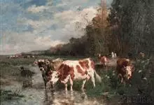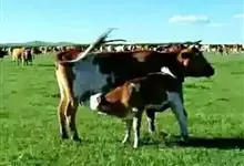 西门塔尔牛是偶蹄目牛科牛属哺乳动物。 体躯长,呈圆筒状,肌肉丰满;头较长,面宽,颈长中等,角较细而向外上方弯曲,尖端稍向上;前躯较后躯发育好,胸深,尻宽平,四肢结实,大腿肌肉发达,乳房发育好。…全部>>