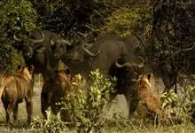 非洲野水牛:共有5个亚种。头体长2.1-3.4米,身高1-1.7米,体重300-900千克。胸膛宽阔,四肢粗壮,头大角长,雄性的角从头部向外和向下扩散,在一些雄性中,角通过覆盖头部的大盾连接。头顶的…全部>>
