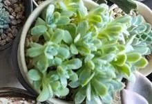爱染锦,别名黄笠姬锦、墨染,景天科莲花掌属多肉植物,矮小灌木状植株。原产地位于大西洋诸岛、北非和地中海沿岸,叶美,可观赏,…全部>>