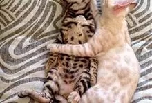 虎猫是食肉目猫科猫属哺乳动物。外表与家猫相似。身体强壮,尾较短;肌肉发达,体形健美。体色为白色、黄褐色或红灰和灰色等,背部具褐色斑纹和斑点,…全部>>