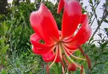 山丹是百合科百合属的多年生草本植物。鳞茎卵形或圆锥形,鳞片长圆形或长卵形,白色;叶散生茎中部,线形,边缘有乳头状突起;花单生或数朵成总状花序,花鲜红色,常无斑点,花被片反卷,…全部>>