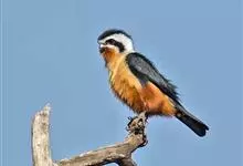 红腿小隼是隼形目隼科小隼属鸟类。红腿小隼前额白色,眼上有一宽阔的白色眉纹,往后经耳覆羽与上背白色领圈相连颊和耳覆羽白色,从眼前开始有一粗的黑色贯眼纹经眼斜向下到耳;其余上体包括翅和尾黑色,…全部>>