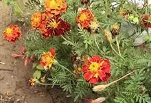万寿菊是菊科万寿菊属一年生草本植物,别名孔雀菊、缎子花、臭菊花、西番菊、红黄草、小万寿菊、臭芙蓉、孔雀草。万寿菊茎近基部分枝。叶羽状分裂,长5-10厘米,宽4-8厘米,裂片长椭圆形或披针形,具锐齿,…全部>>