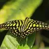 青带凤蝶Graphium sarpedon ,又名青凤蝶,是最普遍的中型凤蝶,飞行速度很快。青带凤蝶的翅膀中央有许多浅蓝色的斑点,很整齐地排列成一条直线。这些斑点由上而下逐渐变大,就像一条青色的带子。全部>>
