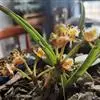 大花盆距兰 Kuntze):茎粗壮,长2-5厘米,节间长约1厘米。叶大,带状或长圆形。伞形花序侧生,通常2-3个,具4-6朵花;花大;萼片和花瓣淡黄色带棕紫色斑点,椭圆形,近相似,长12-17毫米,…全部>>