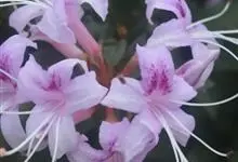 溪畔杜鹃:常绿灌木,高可达3米;幼枝纤细,叶纸质,上面深绿色,下面淡黄褐色,叶脉在上面凹陷,下面凸出,花芽圆锥状卵形,伞形花序顶生,有花多达10朵以上;花梗密被短腺头毛及扁平长糙伏毛;花萼裂片狭三角…全部>>
