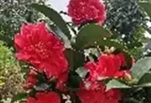 滇山茶:灌木至小乔木,有时高达15米,嫩枝无毛。叶阔椭圆形,上面干后深绿色,发亮,下面深褐色,无毛,侧脉6-7对,边缘有细锯齿。花顶生,红色,直径10厘米,无柄;苞片及萼片10-11片,花瓣红色,…全部>>