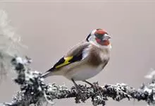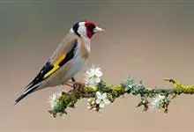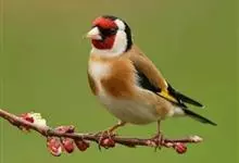 红额金翅雀:共有14个亚种。小型鸟类,体长12-14厘米。额、脸颊和颏朱红色,眼先和眼周黑色,在淡色的头部极为醒目。上体灰褐或乌褐色,尾上覆羽白色,两翅和尾黑色,翅上有黄色斑。下体喉、胸灰褐或乌褐色…全部>>
