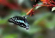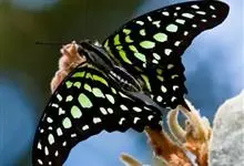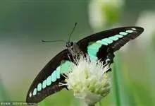 青带凤蝶Graphium sarpedon ,又名青凤蝶,是最普遍的中型凤蝶,飞行速度很快。青带凤蝶的翅膀中央有许多浅蓝色的斑点,很整齐地排列成一条直线。这些斑点由上而下逐渐变大,就像一条青色的带子。全部>>