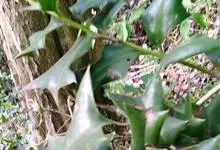 构骨叶冬青学名枸骨,又名猫儿刺、老虎刺、八角刺、鸟不宿、构骨、狗骨刺、猫儿香和老鼠树。常绿灌木或小乔木,高1-3米,二年枝褐色,三年生枝灰白色,叶片厚革质,花淡黄色,果球形,直径8-10毫米,成熟时…全部>>