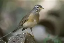白眉鸫,是脊索动物门鸟纲雀形目鸫科鸫属中等体型的灰褐色鸫类。雄鸟头、颈、顺部至上颈灰色,具白色眉纹和下眼圈,眼先深色,上背至尾上覆羽橄榄褐色,上胸和两胁栗褐色,下胸、腹部和尾下覆羽白色,…全部>>