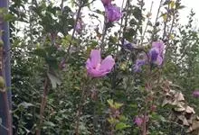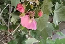 木芙蓉,锦葵科木槿属落叶灌木或小乔木。小枝上有细绒毛;叶片为卵状心形,托叶为披针形,常早落;花单生,花萼为钟形,花冠初为白色或淡红色,后逐渐变为深红色;果实为扁球形,有淡黄色的毛附着。花期8到10月。…全部>>