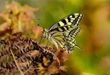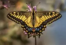 金凤蝶,是鳞翅目凤蝶科凤蝶属动物。金凤蝶为中型凤蝶,翅展70-84毫米,翅背面底色黑褐色,翅脉黑色,翅室具黄斑;前翅背面基部呈暗黄色,亚外缘为黑色,内具一列小黄斑;后翅背面亚外缘区具黑宽边,…全部>>
