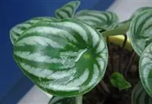 西瓜皮椒草 E. Morren)是胡椒科、草胡椒属植物。多年常绿草木,株高约15-20厘米。根茎顶端从生状抽生长长的叶柄,红褐色的叶柄上端着生单叶。叶片卵圆形至心脏形,向叶柄内反卷成半圆形。穗状花序,…全部>>