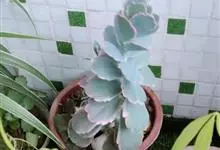 江户紫,景天科伽蓝菜属草本植物,是多年生草本花卉。花白色,但栽培中很少能见到花,常作观叶植物栽培。…全部>>