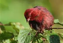 酒红朱雀小型鸟类,体长13~15厘米。雄鸟通体深红色,头部深朱红或棕红色,下背和腰玫瑰红色,眉纹粉红色而具丝绢光泽。两翅和尾黑褐或灰褐色、具暗红色狭缘,内侧两枚三级飞羽具淡粉红色先端。…全部>>