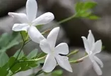 素馨花,木犀科素馨属多年生的攀援灌木植物。攀援灌木,小枝圆柱形,具棱或沟;叶对生,叶轴常具窄翼,小叶片卵形或长卵形;聚伞花序顶生或腋生,花序梗长,苞片线形,花萼无毛,裂片锥状线形,花冠白色,…全部>>