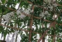 素馨花,木犀科素馨属多年生的攀援灌木植物。攀援灌木,小枝圆柱形,具棱或沟;叶对生,叶轴常具窄翼,小叶片卵形或长卵形;聚伞花序顶生或腋生,花序梗长,苞片线形,花萼无毛,裂片锥状线形,花冠白色,…全部>>