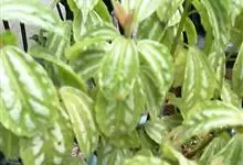 花叶冷水花是荨麻科花叶冷水花属的多年生草本或灌木状植物。株高达40厘米,无毛;叶同对的近等大,倒卵形,先端骤凸,基部楔形或钝圆,有数对不整齐浅牙齿或啮蚀状;花雌雄异株,雄花序头状,…全部>>