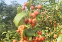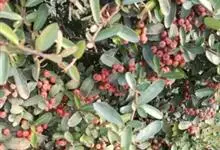 火棘 H. L. Li)是蔷薇科火棘属常绿灌木,老枝呈暗褐色;叶片呈倒卵形,边缘有钝锯齿,齿尖向内弯,两面皆无毛;叶柄短,无毛或嫩时有柔毛;花序是复伞房状,花瓣呈白色近圆形;果球近圆形,…全部>>