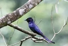 发冠卷尾是中型鸟类,体长28-35厘米。通体绒黑色缀蓝绿色金属光泽,额部具发丝状羽冠,外侧尾羽末端向上卷曲。栖息于海拔1500米以下的低山丘陵和山脚沟谷地带,多在常绿阔叶林、次生林或人工松林中活动。…全部>>