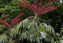 昆士兰伞木,吕松鹅掌柴 ,称昆石兰遮树,澳洲鸭脚木、方式叶鹅掌柴、伞树、大叶伞。叶片阔大,柔软下垂,形似伞状,株形优雅轻盈,易于管理,适于客厅的墙隅与沙发旁边置放,是室内理想的观叶植物。但目前多由…全部>>