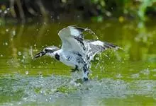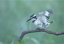 斑鱼狗,是翠鸟科鱼狗属鸟类。中等体型,体长27-31厘米,外形和冠鱼狗非常相似,通体呈黑白斑杂状,但体型较小,头顶冠羽较短。尾白色,具宽阔的黑色亚端斑,翅上有宽阔的白色翅带,飞翔时较为明显。下体白色,…全部>>