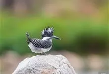 冠鱼狗是翠鸟科鱼狗属鸟类。体长约为24-26厘米,嘴粗直且长而坚硬,翼尖突出,尾巴短而圆,头部较大且颈部短。翅膀短而圆,脚非常短且趾弱细。头部有明显的羽冠。身体羽毛为黑色,…全部>>