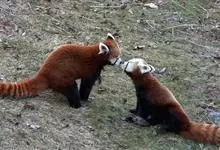 小熊猫:是小熊猫科、小熊猫属的一种动物。雌雄相似,不存在二态性。外形像猫,但较猫肥大,全身红褐色。圆脸,吻部较短,脸颊有白色斑纹。耳大,直立向前。四肢粗短,为黑褐色。尾长、较粗而蓬松,…全部>>