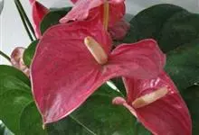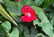 花烛,别名红鹅掌、红掌、安祖花等,为天南星科花烛属的一种多年生草本植物。其茎矮;叶互生,叶片革质,有光泽,阔心形、圆心形,先端钝或渐尖,基部深心形;肉穗花序有细长花序梗,佛焰苞深红色或橘红色,…全部>>