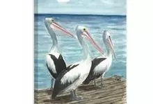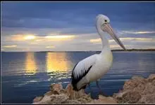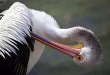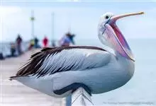澳大利亚鹈鹕是一种大型涉禽,体重达13千克。生活于沿海及河川、湖泊等处。飞行力强而悠逸,常群飞群栖,极善于游泳,但不会潜水。游泳时张口捕鱼,将捕得的鱼兜入喉囊内。有时结群,排成长线,…全部>>