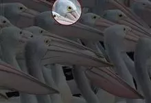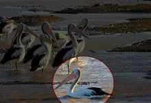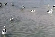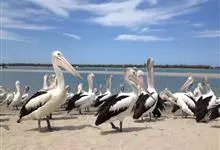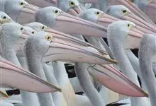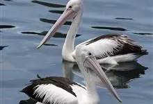 澳大利亚鹈鹕是一种大型涉禽,体重达13千克。生活于沿海及河川、湖泊等处。飞行力强而悠逸,常群飞群栖,极善于游泳,但不会潜水。游泳时张口捕鱼,将捕得的鱼兜入喉囊内。有时结群,排成长线,…全部>>