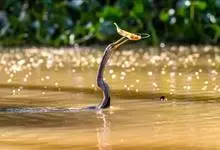 蛇鹈是热带内陆水鸟,颈细长如蛇,嘴尖无喉囊,善于潜水,用嘴当鱼叉叉鱼。蛇鹈在美洲,非洲,亚洲南部和大洋洲各有一种,即美洲的蛇鹈、非洲的红蛇鹈、亚洲南部的黑腹蛇鹈和大洋洲的澳洲蛇鹈A.novaehol…全部>>