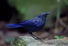 紫啸鸫是雀形目鹟科啸鸫属鸟类,又称黑雀儿,山鸣鸡、乌精。成鸟眼先及颏绒黑色;前额、头顶至背及肩羽和颈侧呈深紫蓝色,羽端具较密集的亮蓝色点斑;腰至尾上覆羽的深紫蓝色较暗而杂黑褐色,…全部>>