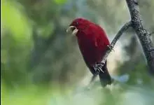 血雀雀科朱雀属鸟类,体重36-49克;体长155-182毫米。雄鸟除眼先、翼与尾为黑色外,通体为鲜红色;嘴鲜黄;雌鸟暗橄榄绿色,羽端较淡或带黄色;腰鲜黄;嘴较暗。虹膜褐色;嘴黄色;腿和脚褐色。…全部>>