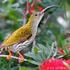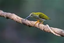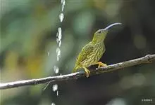 纹背捕蛛鸟:为太阳鸟科捕蛛鸟属的鸟类。是太阳鸟科中体型较大的一种,体重25-45克,体长160-210毫米。嘴粗长而尖且向下弯曲。上体橄榄黄色具黑色中央斑纹。下体淡黄白色满布黑色纵纹,尾具黑色次端斑。…全部>>