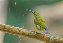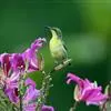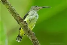 纹背捕蛛鸟:为太阳鸟科捕蛛鸟属的鸟类。是太阳鸟科中体型较大的一种,体重25-45克,体长160-210毫米。嘴粗长而尖且向下弯曲。上体橄榄黄色具黑色中央斑纹。下体淡黄白色满布黑色纵纹,尾具黑色次端斑。…全部>>